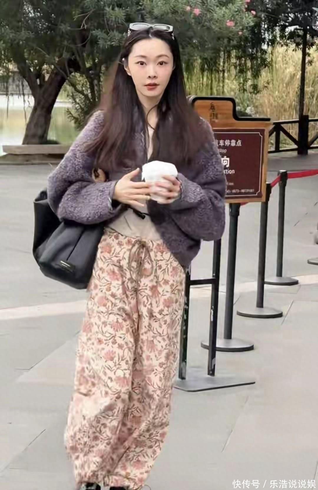镜头里的画面太有生活感了:乌镇的晚风拂过街边小店,灯光把她身上的紫色针织衫晕得格外温柔,下身配的那条花裤子成了焦点——有人说是红底碎花,有人说是墨绿大花,夜里的光线虽让颜色有点“跑偏”,但丝毫不影响亮眼程度。搭配一双简单的黑皮鞋,这穿搭放普通人身上可能要被说“混搭怪”,可穿在宋轶身上,愣是靠气质拉出了高级感。
